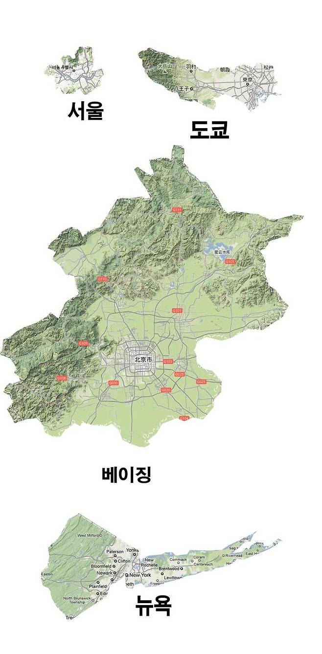 서울 도쿄 베이징 뉴욕 면적비교