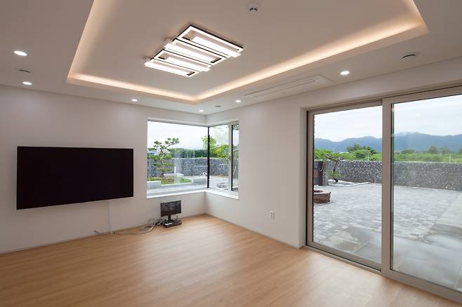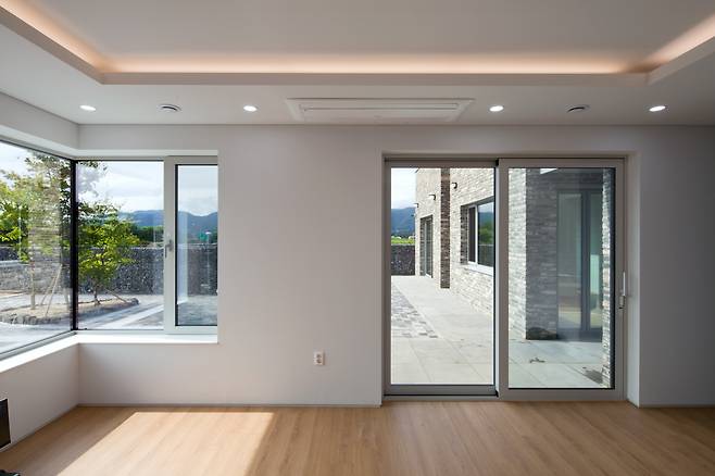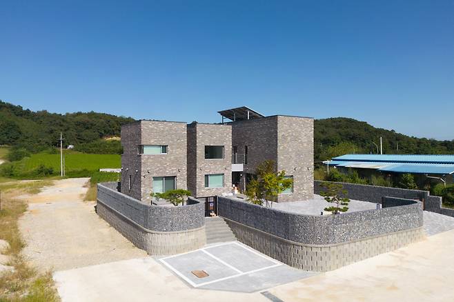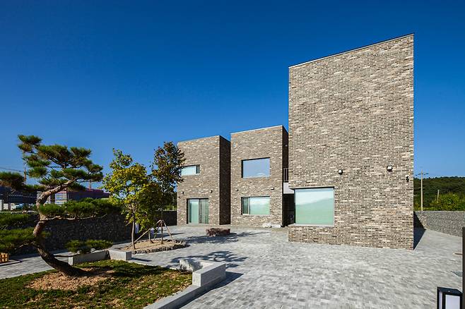 먼저 마당의 면적을 최대한 확보할 수 있도록 집은 후면에 배치했다. 그러나 전 방향으로 좋은 전망을 누릴 수 있는 대지 조건은, 프라이버시 보호에 취약하다는 약점을 동반했다. 이를 보완하기 위해 담장과 대문을 사용하고, Q블록 형태의 담장을 활용하여 프라이빗하지만 일정 부분 개방감을 잃지 않도록 설계했다.