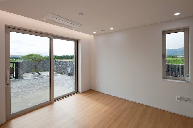 복도를 따라 가장 깊은 곳에 배치된 마지막 덩어리는 가장 프라이빗하고 정적인 영역으로 1층에 안방, 2층에 2개의 방을 추가로 계획하여 손님들이 편하게 머물다 갈 수 있는 편안한 공간이다.