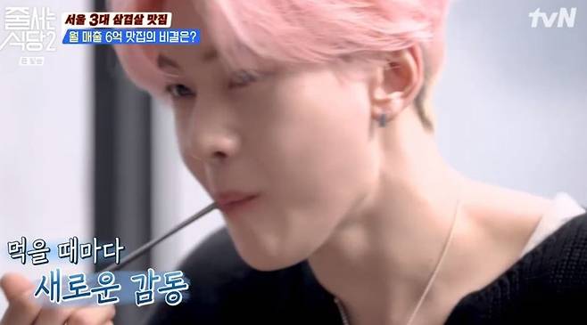 25일 tvN ‘줄서는 식당’에선 제로베이스원 성한빈과 석매튜가 게스트로 출연해 삼겹살 먹방을 함께했다.
