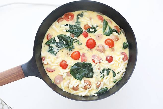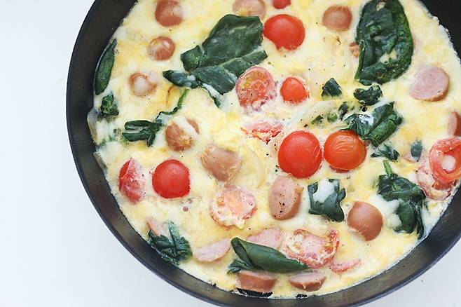 계란 오믈렛 시금치 프리타타는 계란, 토마토, 시금치만 있으면 아침 브런치로 간단하게 만들어 먹기 딱 좋은 요리랍니다