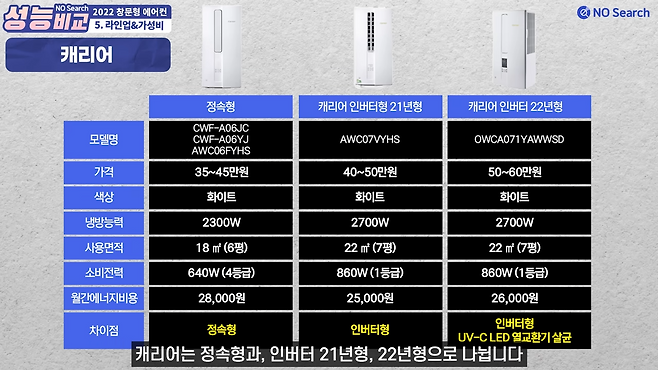 캐리어 제품을 구매하실 계획이라면 21년형 인버터 모델을 추천드립니다. 22년형 대비 자외선 살균 기능만 빠진 가성비가 좋은 모델입니다.