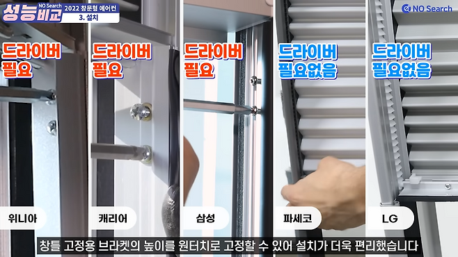 그 중에서도 파세코와 엘지 제품이 드라이버 없이도 브라켓을 원터치로 고정할 수 있어 더 편리했습니다.