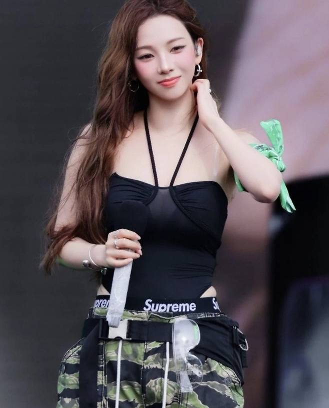 카리나가 선택한 의상은 단순한 노출이 아닌, 계산된 스타일링이 돋보이는 착장이었습니다. 슬림한 상의와 와이드한 하의의 대비를 통해 트렌디하면서도 활동성을 모두 잡았죠.