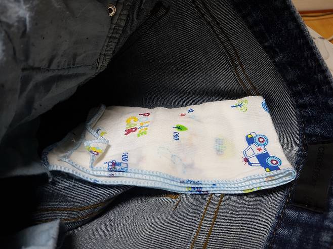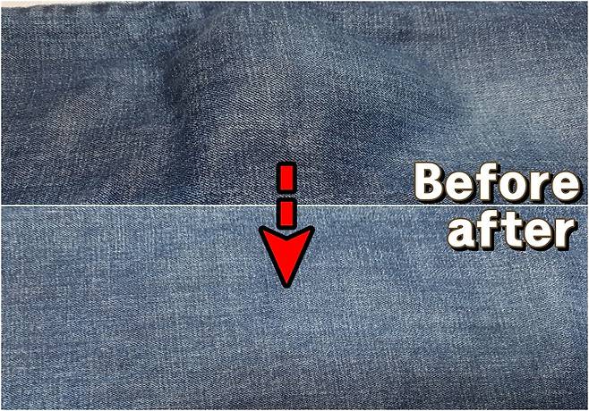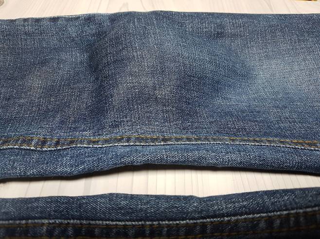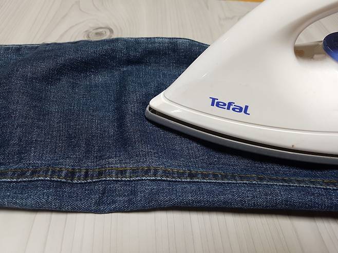 이제 무릎 나온 청바지 그대로 입지 마시고 간단하게 새 옷처럼 다려서 입으세요~