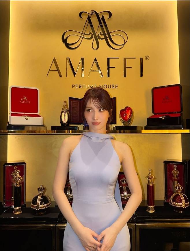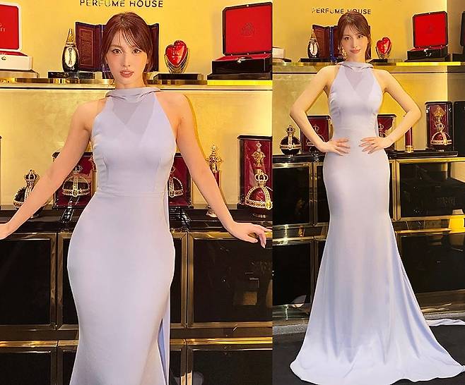 모모는 우아한 실루엣의 연보라빛 드레스를 착용해 고급스러우면서도 관능적인 매력을 동시에 뽐냈습니다.