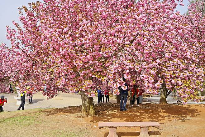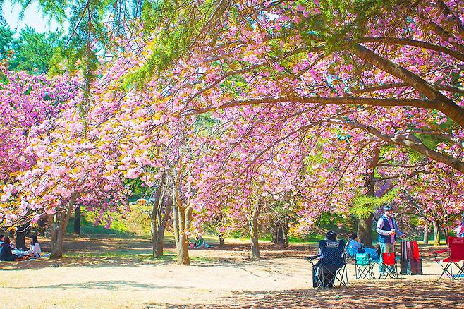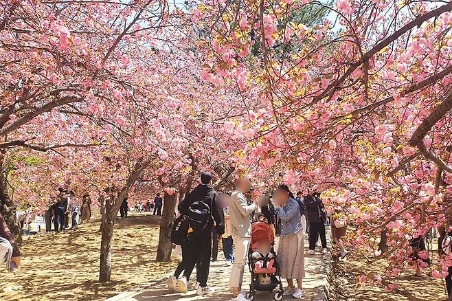 공원에 식재된 겹벚꽃 나무는 약 300그루에 이르며, 그 화려함은 일반 벚꽃과는 비교할 수 없을 정도다.