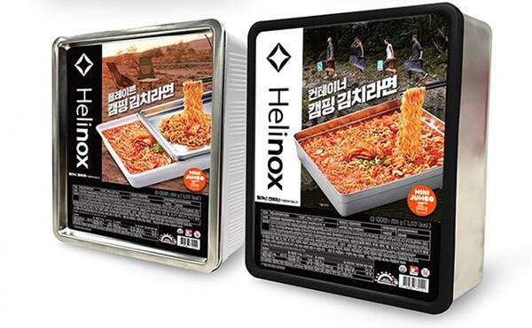 편의점 GS25는 캠핑 브랜드 헬리녹스와 협업해 만든 캠핑 전용 PB 상품을 출시했다. 헬리녹스와 함께 만든 제품은 ‘플레이트 캠핑 김치라면’과 ‘컨테이너 캠핑 김치라면’이다. 기존 용기라면보다 4배 큰 사이즈로 출시되어, 캠핑 시 여럿이 함께 나눠 먹을 수 있도록 기획됐다. 플레이트 제품은 쟁반을, 컨테이너 제품은 용기를 동봉해 캠핑 시 조리 도구로 활용할 수 있다. 가격은 27,800원이다.