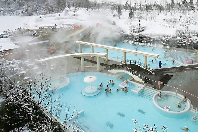 워터파크와 온천 사우나, 찜질방, 전통 한옥, 카라반 등의 시설이 준비되어 있기 때문에 여름은 당연지사고 겨울에 온천을 즐기러 와도 딱인 곳이죠.