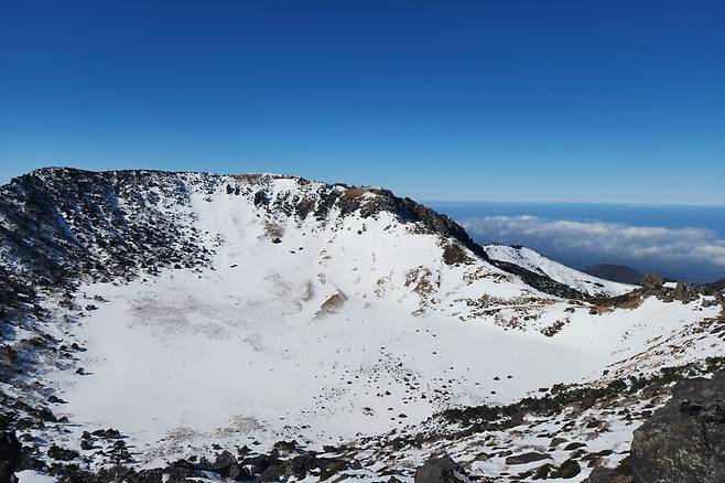 그렇게 험난한 여정을 뚫고 만나게되는 백록담의 모습은, 분명 겨울 국내 여행지로서 가장 아름다운 곳이 되지 않을까 싶습니다.