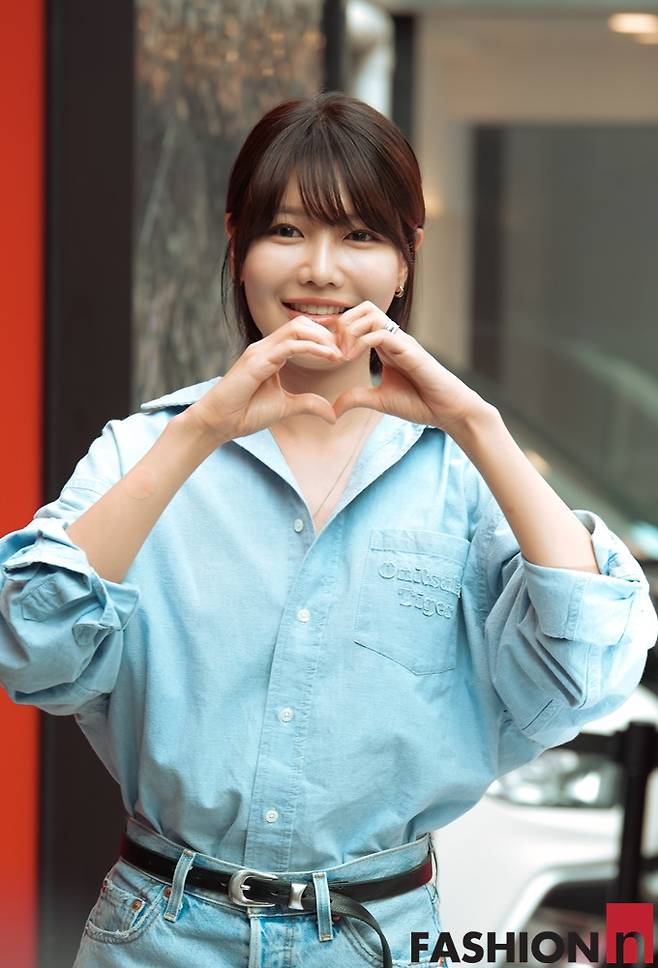 이날 수영은 짧은 헤어 스타일에 데님 쇼츠와 데님 셔츠를 착용한 청청패션으로 시원하면서도 깜찍한 스타일을 선보였다.