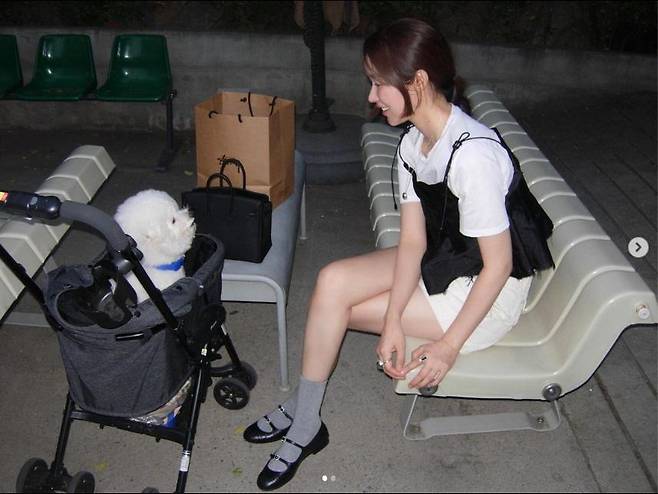 차정원은 러블리한 느낌의 투피스에
