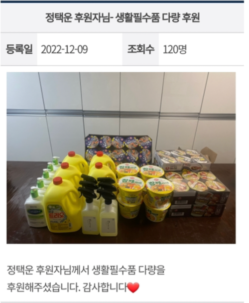 이 보육원에서는 지난 2020년부터 빅스 레오의 본명인 후원자 정택운 이름으로 기부된 물품을 공개했습니다.