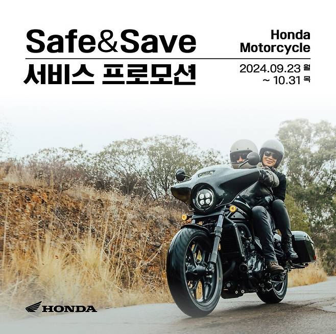 [M투데이 이정근기자] 혼다코리아가 가을 라이딩 시즌을 맞아 혼다 모터사이클 고객들의 안전한 라이딩을 지원하고자 'Safe & Save(세이프 앤 세이브) 서비스 프로모션'을 실시한다고 10일 밝혔다.