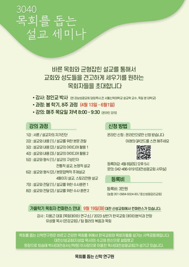 둔산성광교회 관계자는 “목회와 설교를 위한 3040 젊은 목회자들의 열정이 가득했고, 사명감을 고취하는 귀한 자리가 됐다”고 말했다.