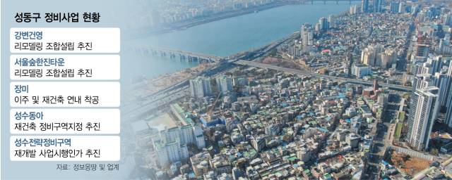 정비업계는 성수전략정비구역 개발 호재를 등에 업고 성동구 내 소규모 단지들이 정비사업에 속도를 내고 있는 것으로 보고 있다. 한강변과 맞닿아있는 성수전략정비구역은 총 4개 지구로, 재개발을 통해 최고 77층, 총 8000여 가구의 대단지로 탈바꿈할 예정이다. 현재 사업시행인가를 준비 중으로, 지난달까지 1·2·4지구 지구단위계획 결정 변경안에 대한 주민공람을 마쳤다.