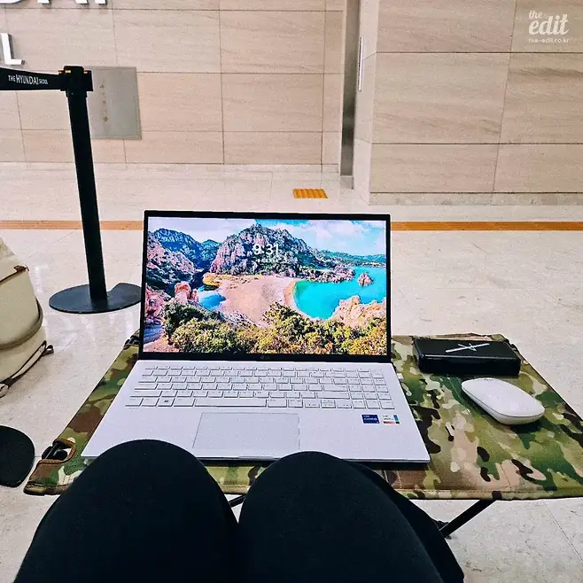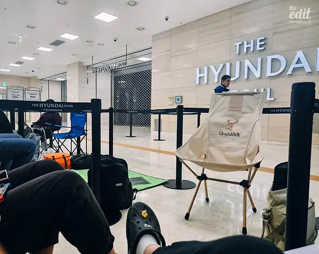 난 오픈런 전날에는 최대한 휴식을 취하고 피곤함을 덜어야겠다고 생각했어. 그래서 퇴근 후 집에서 씻고 편한 옷으로 갈아입은 뒤 캠핑 의자와 테이블을 챙겨서 오후 10시부터 오픈런 대기를 하려고 했는데, 오후 6시쯤부터 오픈런을 하는 사람들이 있다는 첩보를 듣게 된거야. 10시에만 가도 내가 처음일 줄 알았는데, 웬걸… 내가 오픈런을 너무 쉽게 생각했나 봐. 그때부터 늦으면 어떡하지 걱정이 되기 시작하는 거야. 그래서 퇴근하자마자 집에서 옷만 갈아입고 택시를 타고 9시쯤 더현대에 도착했어. 다행히 12번째 순서더라고. 자, 이제 시작이야.