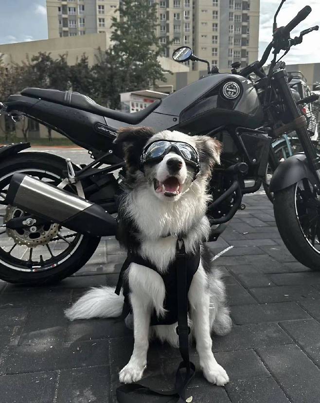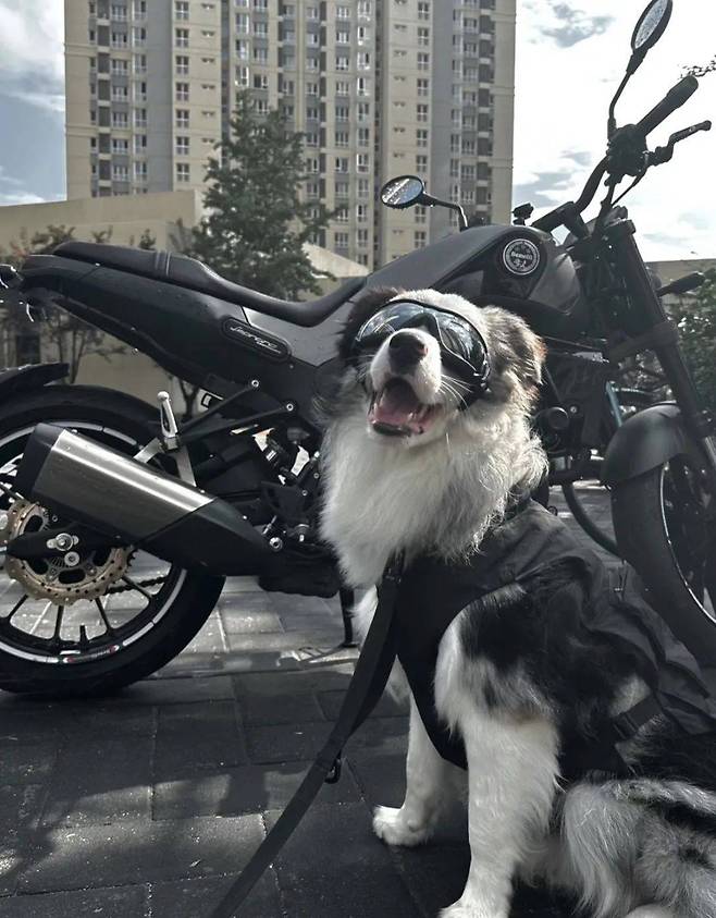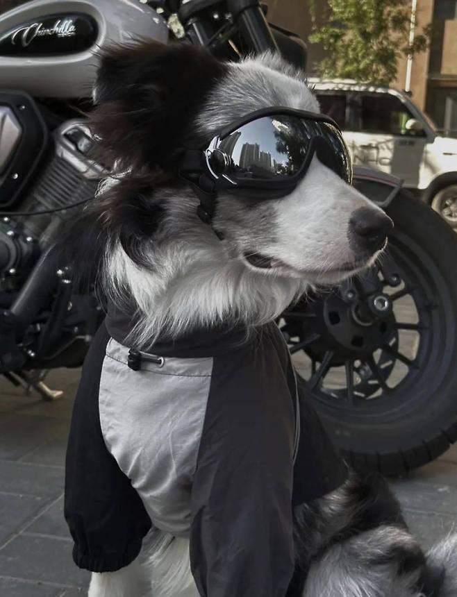 주인은 반려견을 멋진 소년처럼 꾸미는 것을 좋아합니다. 특히 바이크와 함께 찍은 사진들은 "정말 잘생겼어!"라고 감탄하게 만듭니다.