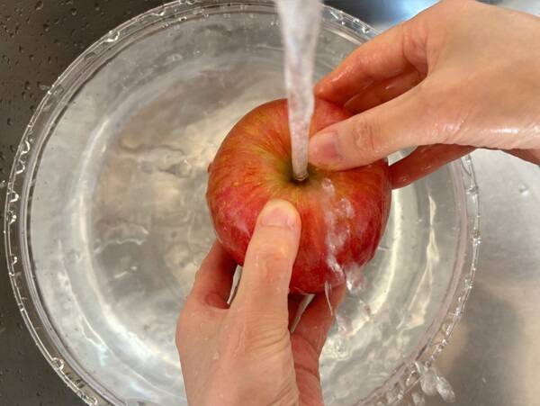 두 번째는 베이킹소다 세척법으로, 물 1리터에 베이킹소다 한 스푼을 넣고 과일을 10분 담근 뒤 흐르는 물로 씻어내면 농약뿐 아니라 왁스도 일부 제거할 수 있다.