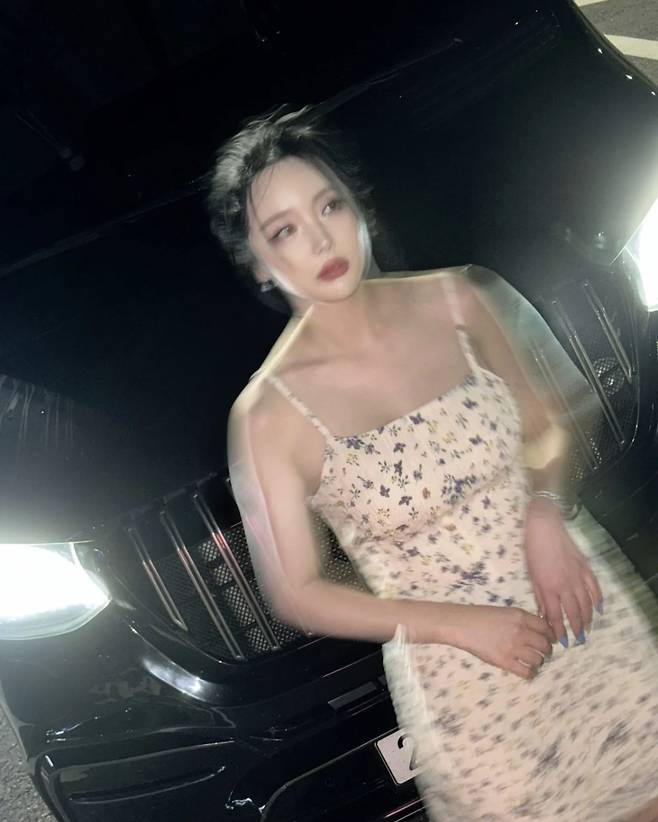 가수 홍진영이 29일 인스타그램에 " 내피드에서 거의 보기힘든 #밝은옷 그리고 #꽃무늬원피스" 라는 글과 근황 사진을 업로드했습니다.
