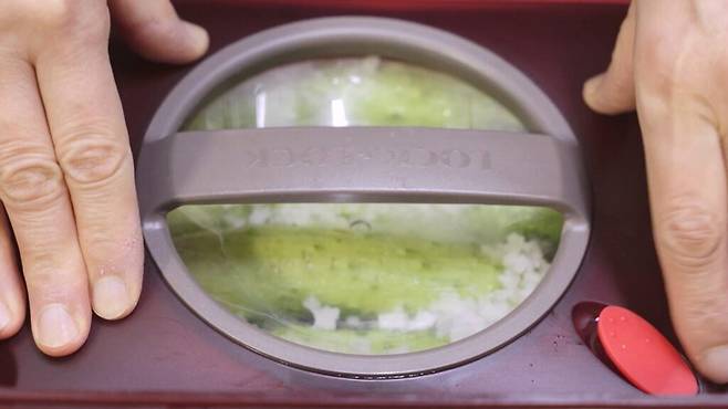 누름판으로 꼭 눌러준 뒤 뚜껑을 닫고 실온에서 1주일 보관합니다.