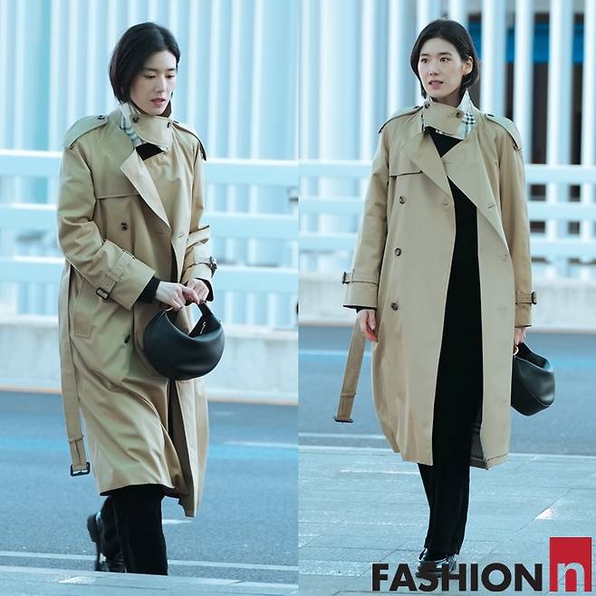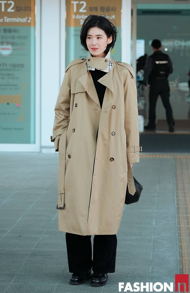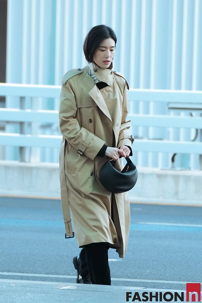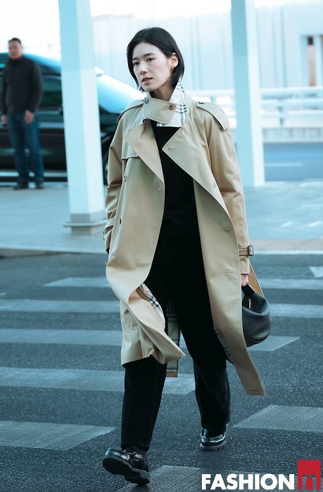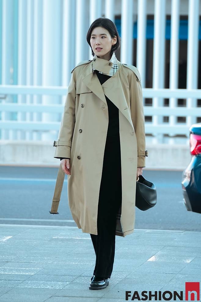 배우 정은채가 단아하면서도 지적인 트렌치 코트룩으로 공항을 빛냈다.