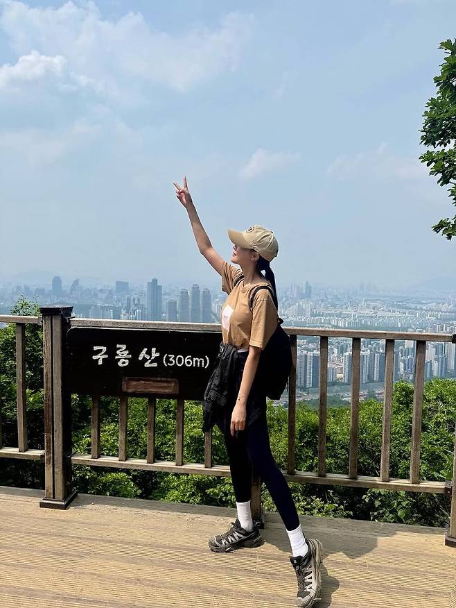마지막은 구룡산에서의 트래킹룩. 베이지 볼캡과 박시한 티셔츠, 블랙 레깅스 조합에 기능성 트레킹화까지 갖춘 모습은 “패션도 체력도 만렙”이라는 평이 절로 나온다. 무엇보다 ‘걷는 화보’라는 별명이 딱 어울리는 순간이다.