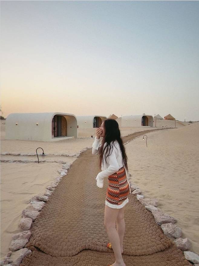 가수 에일리가 25일 인스타그램에 "신행 첫날은 바로 바로~~ 🥁🥁🥁두바이 사막에서의 글램핑… 정말 낭만적이얌 🥹 나 사막 사랑했네…허니문 첫날💜"이라는 글과 함께 여러 장의 사진을 게재했습니다.