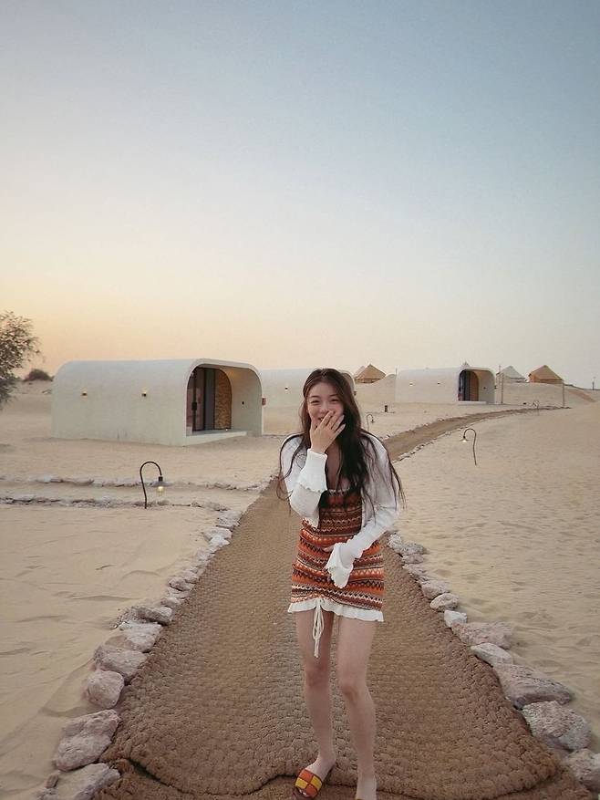 가수 에일리가 25일 인스타그램에 "신행 첫날은 바로 바로~~ 🥁🥁🥁두바이 사막에서의 글램핑… 정말 낭만적이얌 🥹 나 사막 사랑했네…허니문 첫날💜"이라는 글과 함께 여러 장의 사진을 게재했습니다.