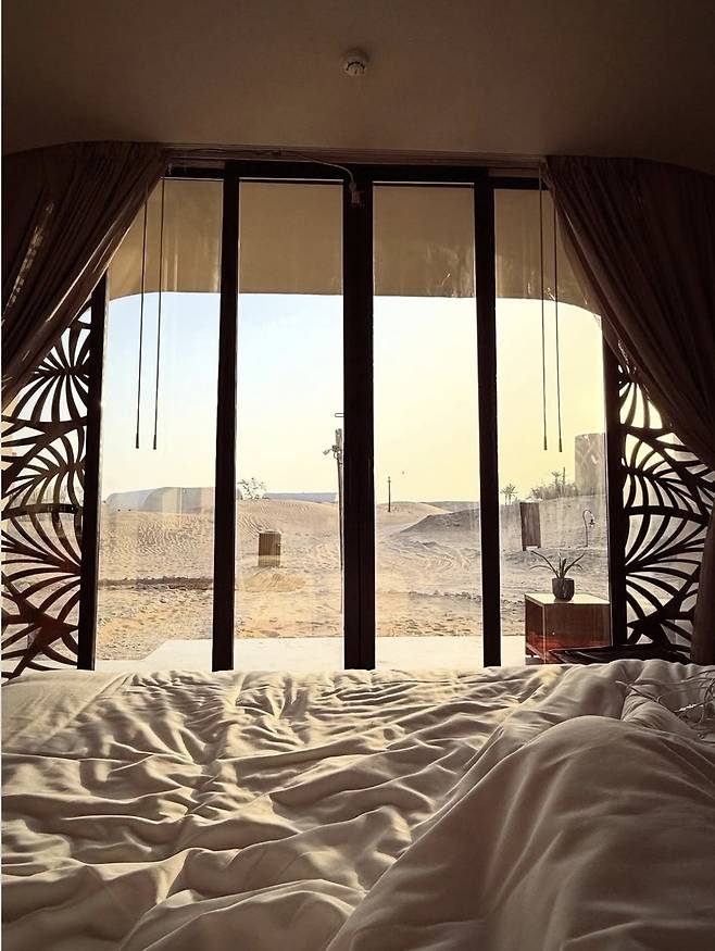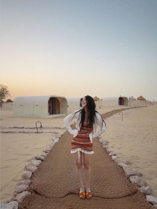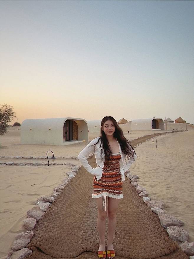 가수 에일리가 25일 인스타그램에 "신행 첫날은 바로 바로~~ 🥁🥁🥁두바이 사막에서의 글램핑… 정말 낭만적이얌 🥹 나 사막 사랑했네…허니문 첫날💜"이라는 글과 함께 여러 장의 사진을 게재했습니다.