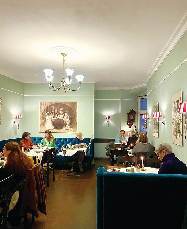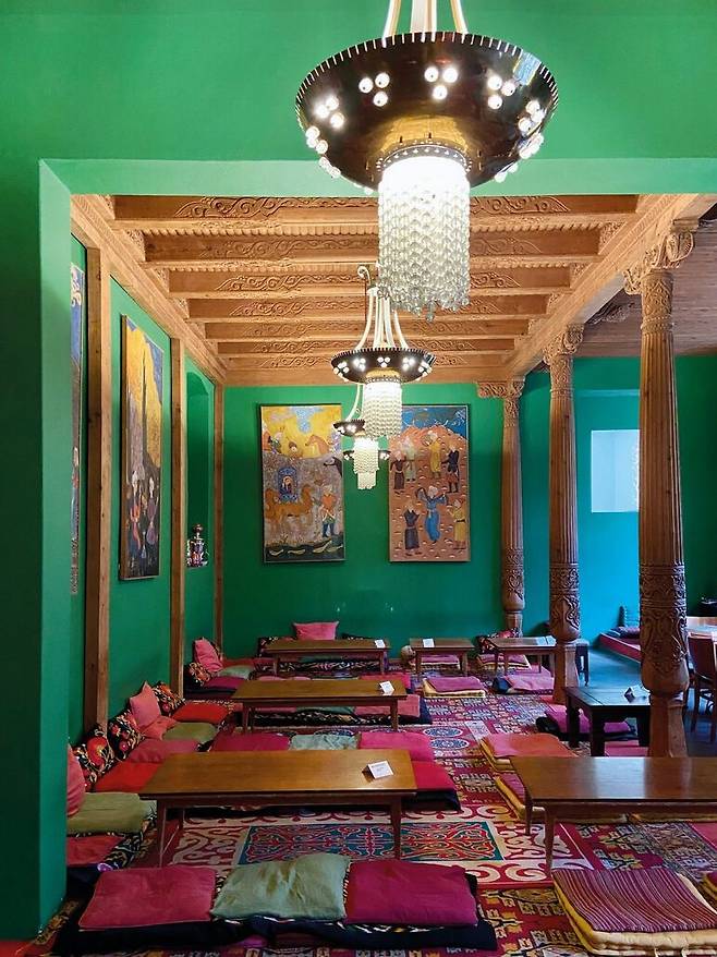섬세하게 조각된 단향목 기둥과 좌식 테이블, 카펫이 깔려 있는 내부는 들어서는 순간부터 신비롭다. 이 다실은 원래 1974년 라이프치히 무역박람회에 전시되었던 공간으로 1999년까지 운터 덴 린덴의 ‘팔레스 암 페스퉁스그라벤’에 자리해 있었다. 이후 현재의 자리로 옮겨와 12년째 찻집으로 운영 중. 차실은 구소련에 속해 있던 타지키스탄이 원조다. 러시아 전통 찻주전자에 나오는 사모바르 티 세트는 여러 가지 종류의 설탕과 잼, 건포도, 쿠키, 보드카가 함께 나온다. 좋은 차 셀렉션과 함께 러시아식 만두인 멜리니, 피로시키, 수프 등의 다양한 음식도 즐길 수 있다. 현금 결제만 가능하다