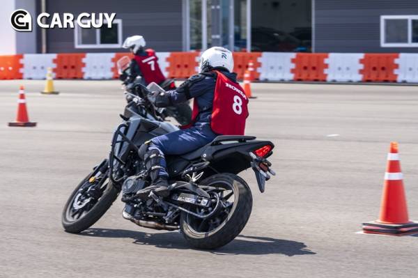 한 시간 정도 이론 교육 후 본격적인 실습 교육이 진행된다. 온로드 어드벤처 모터사이클인 NX500을 타고 교육에 들어갔다. CB500 시리즈로 충분히 검증된 2기통 엔진의 넉넉한 파워 덕분에 다루기 쉽고 높은 핸들바로 편하게 탈 수 있다.