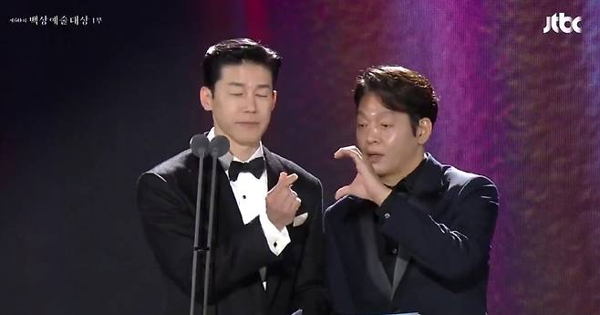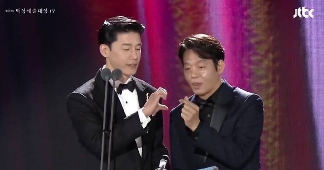 최근 제60회 백상예술대상에 시상자로 참여한 '범죄도시4' 김무열과 박지환은 역대급 불협화음(?) 동반 손하트를 선보여 관객들을 웃게 만들었다.