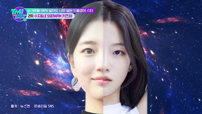이날 ‘TMI 쇼’는 수지와 카즈하를 차트 2위로 꼽았다. 두 사람은 최근 각종 온라인 커뮤니티에서도 닮은꼴로 거론돼 화제를 모은 바 있다.