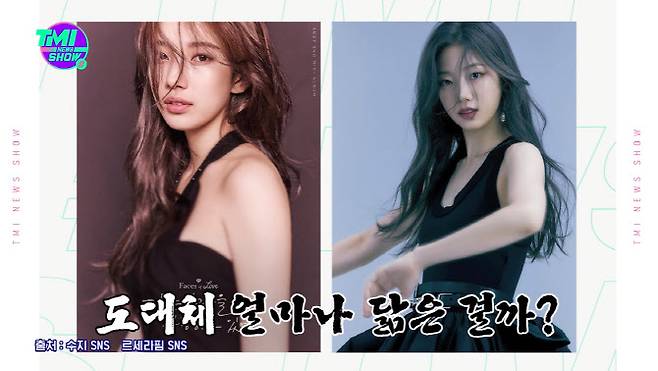미쓰에이 출신 수지와 르세라핌 멤버 카즈하가 똑닮은 외모로 주목받았다.