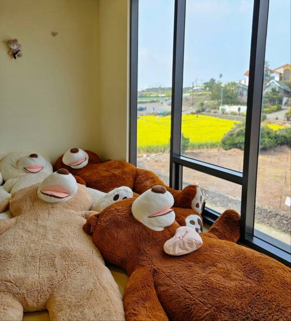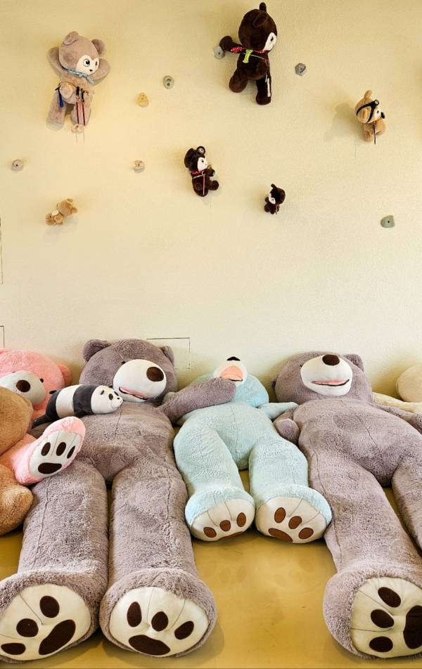 성인보다 큰 테디베어들이 가득 차 있어서 신발 벗고 올라가 곰 인형들 위에서 편안하게 휴식을 취해도 됩니다.