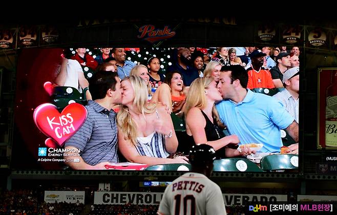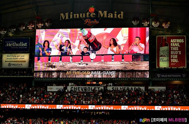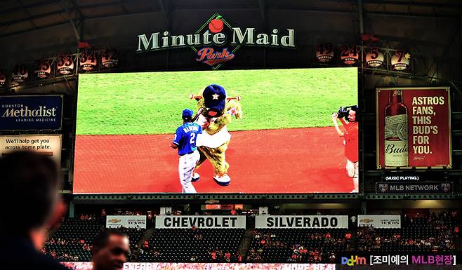 텍사스 레인저스와 휴스턴 애스트로스의 2차전이 열리기 20분 전, 미닛 메이드 파크에선 한바탕 웃음소리가 들렸습니다. 관중도, 취재진도, 더그아웃에 있던 코칭 스탭도 실소를 터트립니다. 이럴 땐, 전광판을 보면 어떤 일이 벌어지고 있는지를 쉽게 알 수 있습니다.