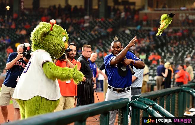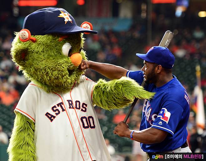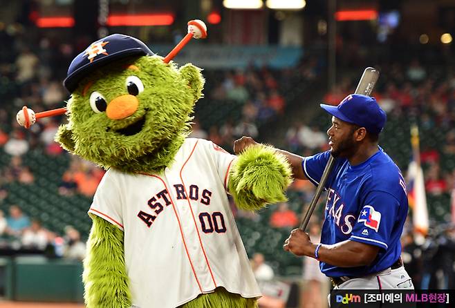 오르빗은 메이저리그 마스코트 중에서도 장난기 하면 다섯 손가락 안에 꼽힐 정도입니다. 귀여운 얼굴에 개구쟁이 행동을 자주 보입니다. 하지만 텍사스 선수들도 결코 만만한 상대는 아니었습니다.
