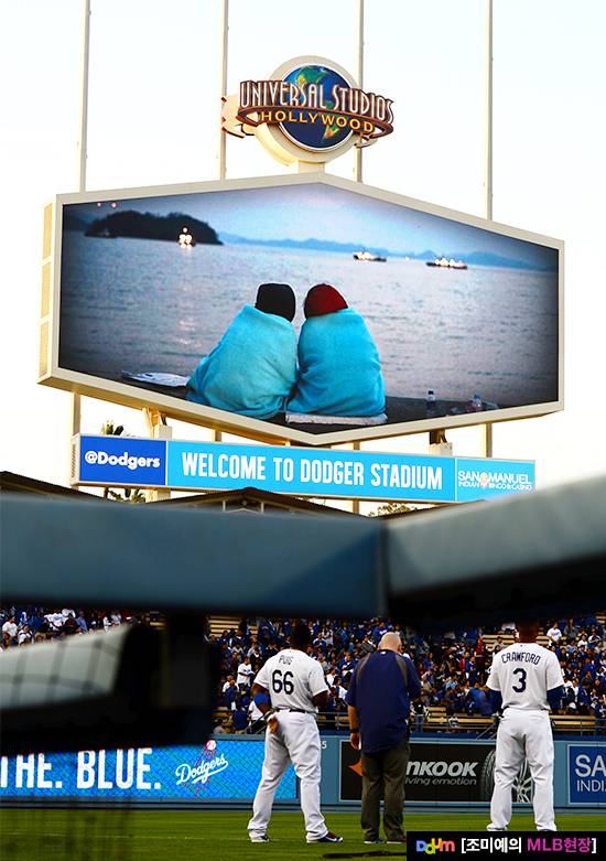 이처럼 야구장의 전광판은 정보 전달뿐만 아니라, 참여형 이벤트, 소통, 공감의 매체로 활용됩니다, 때론 영화 스크린으로 변신하기도 합니다. 그리고 슬픔과 기쁨을 함께 공유하는 시간을 마련하는 장치로도 활용됩니다. 다저스가 세월호 희생자를 추모했던 것처럼.