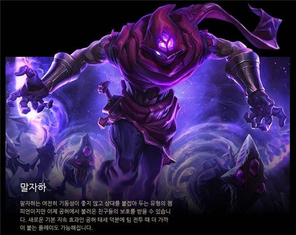 말자하는 빠른 라인 클리어 능력과 상대를 붙잡아두는 궁극기로 중후반에서 빛을 발하는 챔피언이지만 라인전 단계에서 갱킹에 굉장히 취약하다는 약점을 안고 있었다. 그러나 이번 개편으로 말자하는 초반에도 안정적인 성장을 할 수 있게 됐다. 패시브 스킬 '공허 태세' 덕분이다.