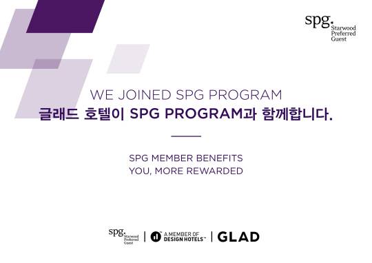 이번 SPG 프로그램 실시는 글래드 호텔 여의도를 서울 최초의 디자인 호텔스 멤버로 선정한 디자인 호텔스(Design Hotels™)가 세계적인 호텔 체인그룹 스타우드(Starwood)와 제휴를 맺은 데 따른 것이다. 스타우드는 100여 국가 1200여 호텔에서 SPG 프로그램을 운영하고 있다.
