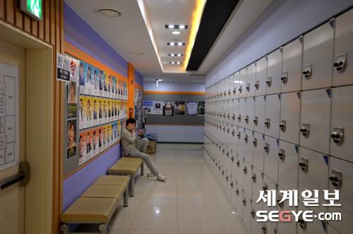 | 서울 노량진의 한 공무원 학원. 한 남학생이 잠시 복도에 나와 휴식을 취하고 있다. |