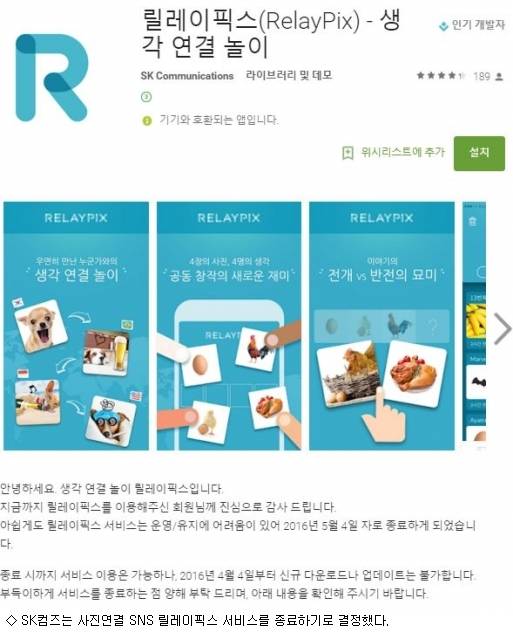 SK컴즈가 지난해 5월 출시한 공유형 SNS 서비스 '릴레이픽스'는 조용히 서비스 종료를 결정했다.
