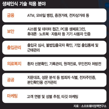스마트폰이나 PC의 보안인증, 출입통제 시스템 등 모바일 기기와 웨어러블(착용)기기, 사물인터넷(IoT) 기반 기술이 발전하고 우리 생활에 밀착되면서 생체인증 기술 보급도 확대되고 있다.