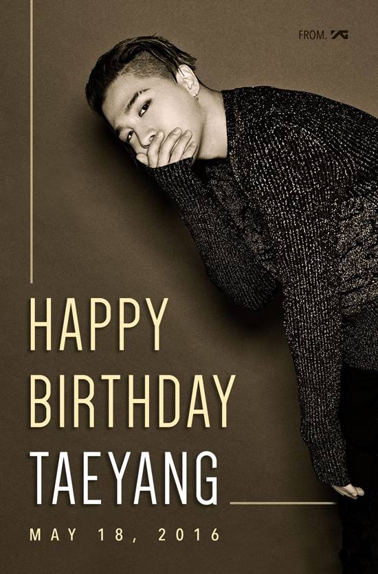 18일 자정 YG 공식 블로그에는 '해피버스데이 태양(HAPPY BIRTHDAY TAEYANG)'이라는 타이틀로 태양의 생일을 축하하는 이미지가 게재됐다. 공개된 이미지 속 태양은 블랙톤의 니트를 입고 무심한 듯 시크한 눈빛으로 정면을 바라보고 있다.