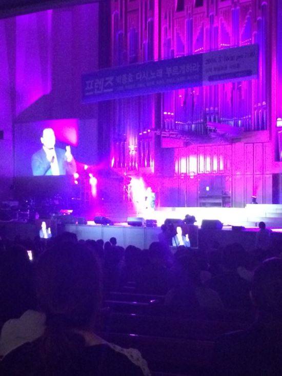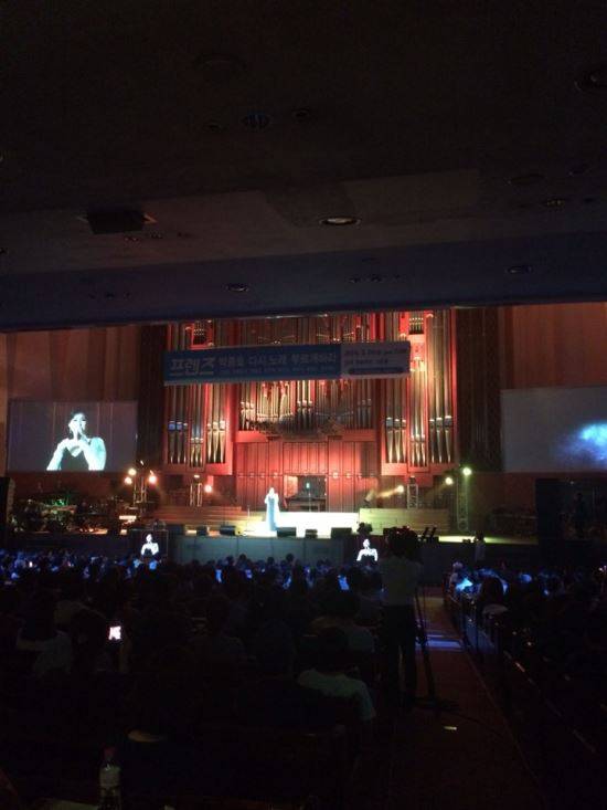 사역자들은 ‘하나님의 은혜’ ‘나를 받으옵소서’ 등 박 장로의 대표곡을 함께 불러 갈채를 받았다. 온누리교회 장로합창단도 무대를 빛냈다. 집회는 ‘박종호의 프렌즈(Friends·친구들)-박종호 다시 노래 부르게 하라’란 제목으로 진행됐다.
