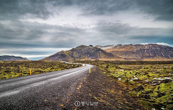 스나이펠스네스 반도를 떠나기 전, 마지막으로 택한 곳은 그륀다르피요르두르(Grundarfjörður)라는 마을이었다. 본래 가려던 곳은 아니었지만, 일정을 바꾸며 새로 추가한 곳이었다. 반도의 중심 마을인 스티키숄무르(Stykkishólmur)에서 그륀다르피요르두르 까지의 여정은 판타지 소설을 읽는 것과 같았다. 진한 녹색 이끼로 가득 덮인 현무암 무더기가 들판을 이뤘는데, 미친 풍경이라고밖에는 달리 표현할 방법이 없었다.