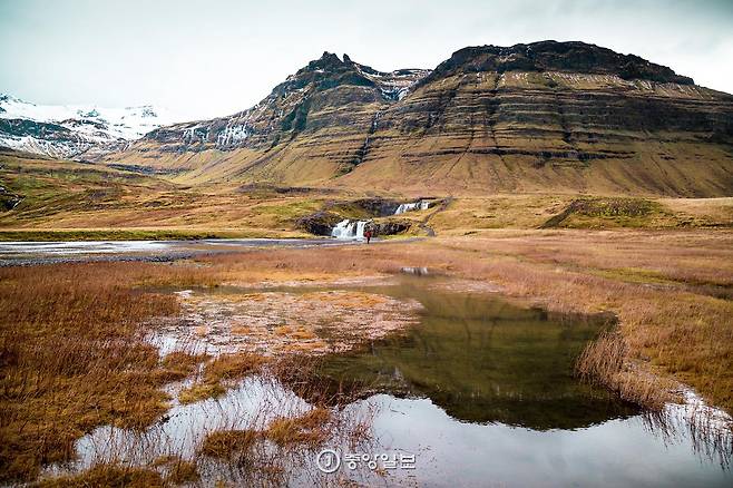 자신을 초라하게 본 여행자를 비웃기라도 하듯, 산과 들판은 점점 오묘한 색깔을 뽐냈고, 폭포 소리는 더 강해졌다. 시원하게 낙하하는 폭포 뒤의 키르큐펠은 위풍당당했다. 자리를 옮길 때마다 놀랍도록 달라지는 풍경이 신기해서 주변을 하염없이 휘젓고 다녔다. 한참을 그러다 정신을 차렸을 때는 이미 두어 시간이 지나있었다. 폭포에서 내려오는 내내 무언가에 홀린 것처럼 기분이 이상했다. 아쉬운 마음을 뒤로하고 차에 올랐다. 차창 밖으로 키르큐펠과 마을이 꿈처럼 사라져갔다. 나는 늙은 마법사의 누더기 모자를 닮은 저 산이 마법을 건 것이 틀림없다고 생각했다.