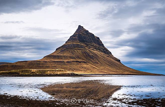 아이슬란드 마을 대부분이 그렇지만, 그륀다르피요르두르는 유독 아기자기하고 동화 같다. 그륀다르피요르두르는 굵직한 산맥의 품 안에 안겨있었다. 마을에는 색종이로 접은 것 같은 알록달록한 집들이 가득했다. 문을 열면 키가 무릎만 한 난쟁이 마법사들이 나올 법한 느낌이었는데, 아마도 마을 뒤쪽에 있는 독특한 모양의 산 때문이었을 것이다. 마을을 지나 조금 깊숙이 들어가면 원뿔꼴의 민둥산, 키르큐펠(Kirkjufell)이 나온다. ‘교회 산’이라는 뜻이다. 지붕이 뾰족한 아이슬란드 교회의 모습과 비슷하여 붙은 이름 같았다.