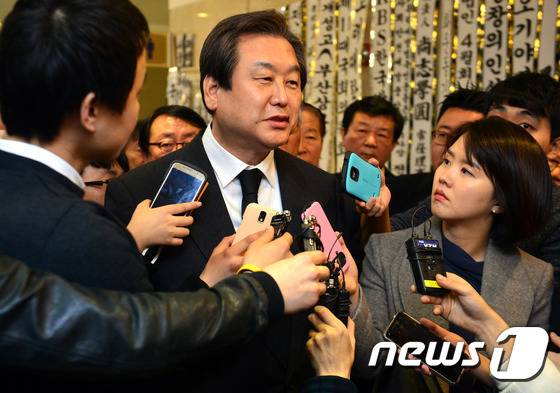 (서울=뉴스1) 최현규 기자 = 김무성 새누리당 대표가 21일 오후 서울 서초구 서울성모병원에 마련된 이기택 전 민주당 총재 빈소를 찾아 조문을 마친 뒤 취재진과 인터뷰를 하고 있다. 김 대표는 "419 혁명을 주도하셨고 7선 의원을 지내면서 불의와 타협하지 않고 초지일관 민주주의를 위해 희생하신 존경스러운 분"이라며 "이 전 총재의 민주화를 위한 열정, 정신들을 교훈으로 삼겠다"고 말했다. 2016.2.21/뉴스1